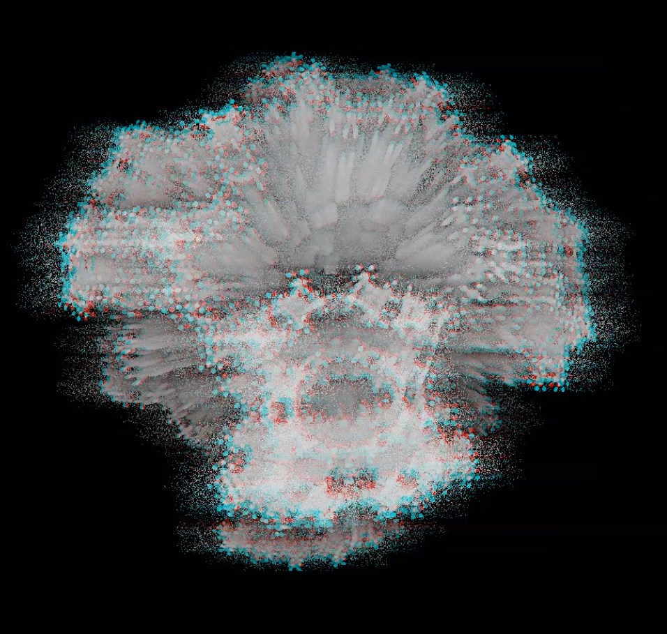 Different isolated audio frequencies changing variables real-time point cloud fractal